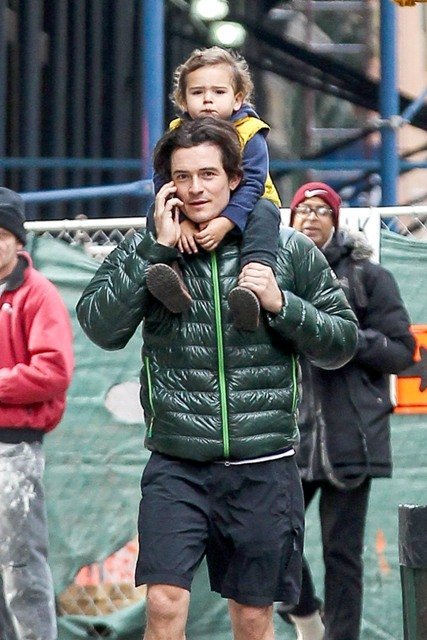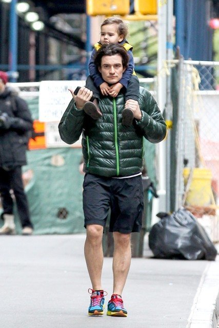 И вот, собственно, очередное доказательство тому, что Орландо верен своим словам. Актер попался на глаза папарацци в Нью-Йорке с крохой Флинном на закорках. Не сказать, что пацаненок выглядел особенно счастливым (это, видимо, от того, что папа отвлекся от него на телефонный звонок), но и несчастным его тоже не назовешь. Все будет хорошо!-)