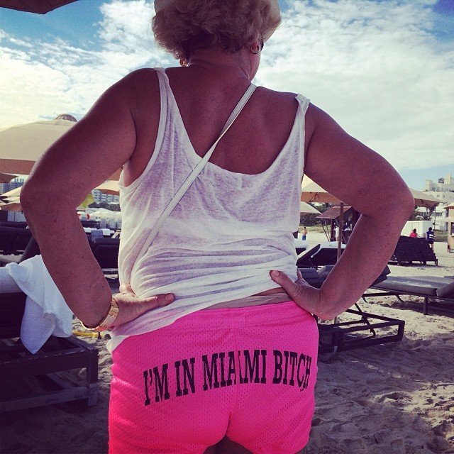 При этом Собчак также смело прокомментировала фотографию: «Маме 62. Она у меня агонь!! Сказала, что не знает, что у нее написано на заднице «я майамская сучка». «Чего же они не предупредили», — возмущается мама».