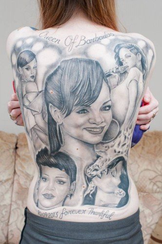 Фанатка Рианны украсила свое тело татуировками с портретами артистки