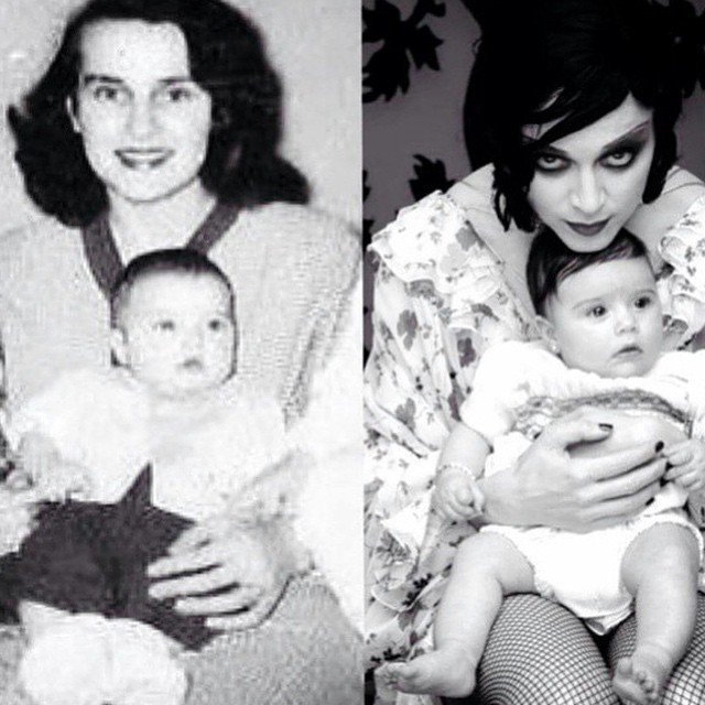 Американская певица Мадонна опубликовала на своей страничке в социальной сети коллаж, состоящий из очень похожих фотографий: снимка, на котором её мать сидит с будущей певицей на руках и фотографии, на которой она сама держит на руках свою маленькую дочку Лурдес.