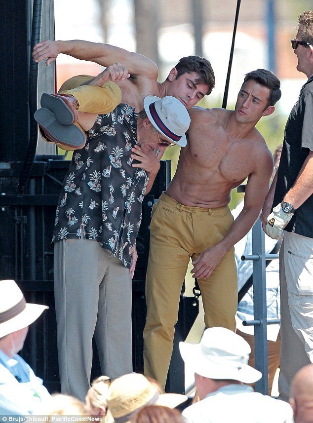 В четверг Зак Эфрон и Роберт Де Ниро были замечены на съемках своего нового совместного фильма «Грязный дедушка». Довольно неоднозначное название, согласитесь. Но не об этом речь. Съемки комедии происходили в Джорджии. Именно там актерам и довелось помериться бицепсами. Отметим, что 71-летний Де Ниро нисколько не уступал по физической подготовке своему 27-летнему коллеге, а даже наоборот продемонстрировал удивительную силу рук, когда начал отжиматься на одной левой. Эфрон же в свою очередь решил не рисковать…