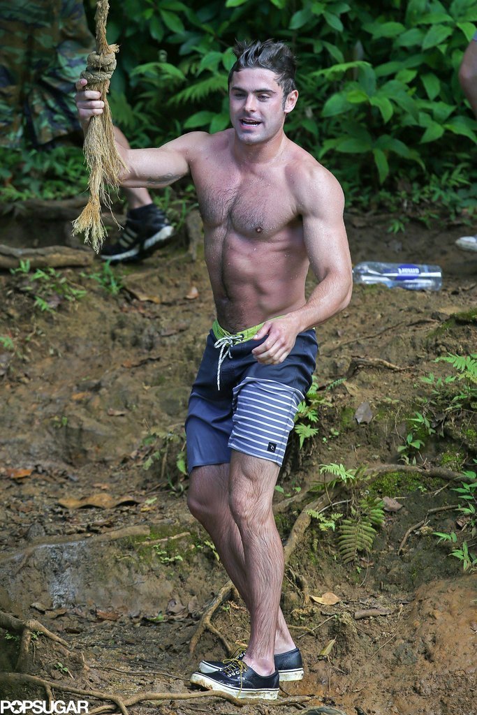 …и этот мужчина все еще свободен! Говорим большое спасибо папарацци и друзьям Зака Эфрона за предоставленные фото, потому что именно благодаря им мы можем любоваться прекрасным, не перекаченным, но подтянутым телом знаменитого актера. Сейчас красавчик отдыхает на Гавайях. Пляжу и клубным вечерам Зак предпочел пешие прогулки по лесу. Так, в самом центре острова Оаху Эфрон и его приятели нашли себе прекрасное развлечение – тарзанку.