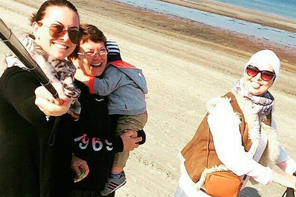 На фото мы видим, как Жанна прогуливается по пляжу, а компанию ей составляют самые близкие люди – сестра Наталья, мама Ольга Владимировна и сынуля Платон.