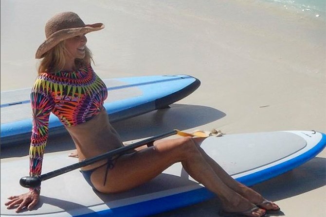 Модель опубликовала несколько кадров, где она позирует в купальнике, катается на серфе и просто наслаждается отдыхом.