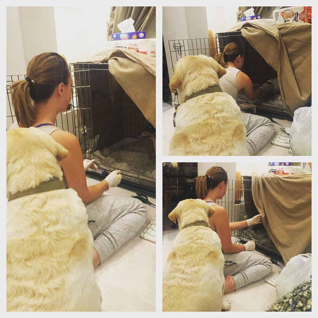 «Было 4 щенка, 3-ого малышка удалось спасти, но последнюю девочку не получилось…((( так что, осталось только 3 щеночка… Первый раз были у нас такие тяжёлые роды..(( господи, как же тяжело терять таких малышей((( 3-й малыш с трудом, но все же, вернулся к жизни, а вот девчуля не захотела оставаться с нами…ревели все… Больше никаких родов, я такого точно больше не перенесу», — написала Наталья.