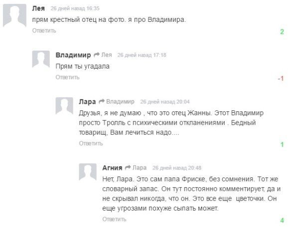Как оказалось, Владимир и в самом деле зарегистрирован на сайте и частенько грубит и даже угрожает пользователям, высказывающим мнение о его семье. Конечно же, не лестные. Вот только некоторые скриншоты его разговоров.