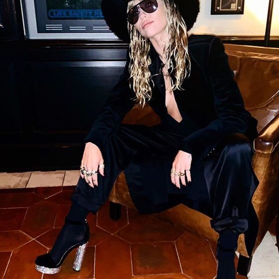 Подчеркнула соблазнительность этого образа и Кэйтлин Картер, «пустив слюни» на фото своей возлюбленной. Сайрус выложила в свой Instagram снимок с показа. На нем певица запечатлена с немного приоткрытой в рубашке грудью.