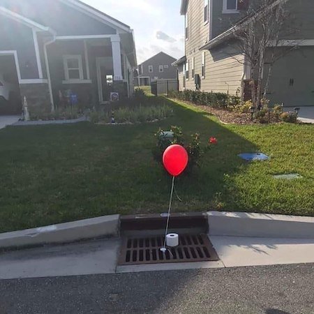 Забавная фотография совместила его нашумевший роман “Оно” и панику в момент пандемии коронавируса. На фотографии изображена сливная решетка, на которой скромно стоит рулон туалетной бумаги. К этой решетке писатель привязал красный воздушный шарик, наполненный гелием. Таким образом Стивен сделал посыл на свой роман “Оно”, главным символом которого, стал этот шар. Кто не смотрел экранизацию книги, объясним, что с таким шариком прогуливался по улицам города клоун Пеннивайз, который обманным путем похищал детей.