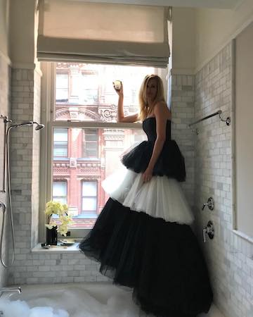 В данном платье актриса должна была сиять на Красной дорожке перед балом в музее Метрополитен. Вместо этого, она надела роскошный наряд и сфотографировалась в ванной комнате.