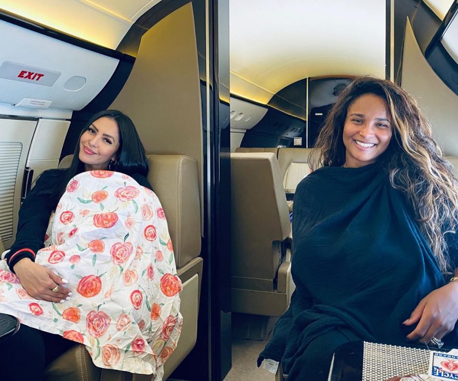 На снимке две гордые мамы широко улыбались, когда они сидели по бокам друг от друга в частном самолете, прикрывая своих младенцев одеялами для кормления. Сиара совсем недавно родила (в июне месяце) и кормила своего 10-недельного сына Уина Харрисона от мужа Рассела Уилсона, в то время как Ванесса держала на руках дочь Капри Коби от покойного мужа, Коби Брайанта.