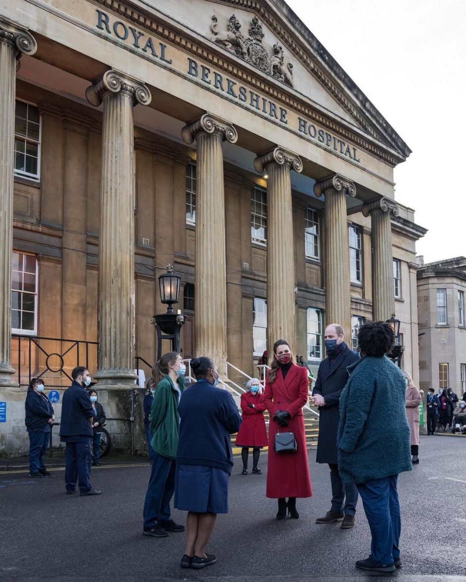 Пара направилась в больницу, недалеко от того места, где Кейт выросла в Баклбери, во вторник днем, чтобы встретиться с акушерками и медсестрами, чтобы поблагодарить их за их «неустанный труд» во время пандемии коронавируса, сообщил их офис в Кенсингтонском дворце.