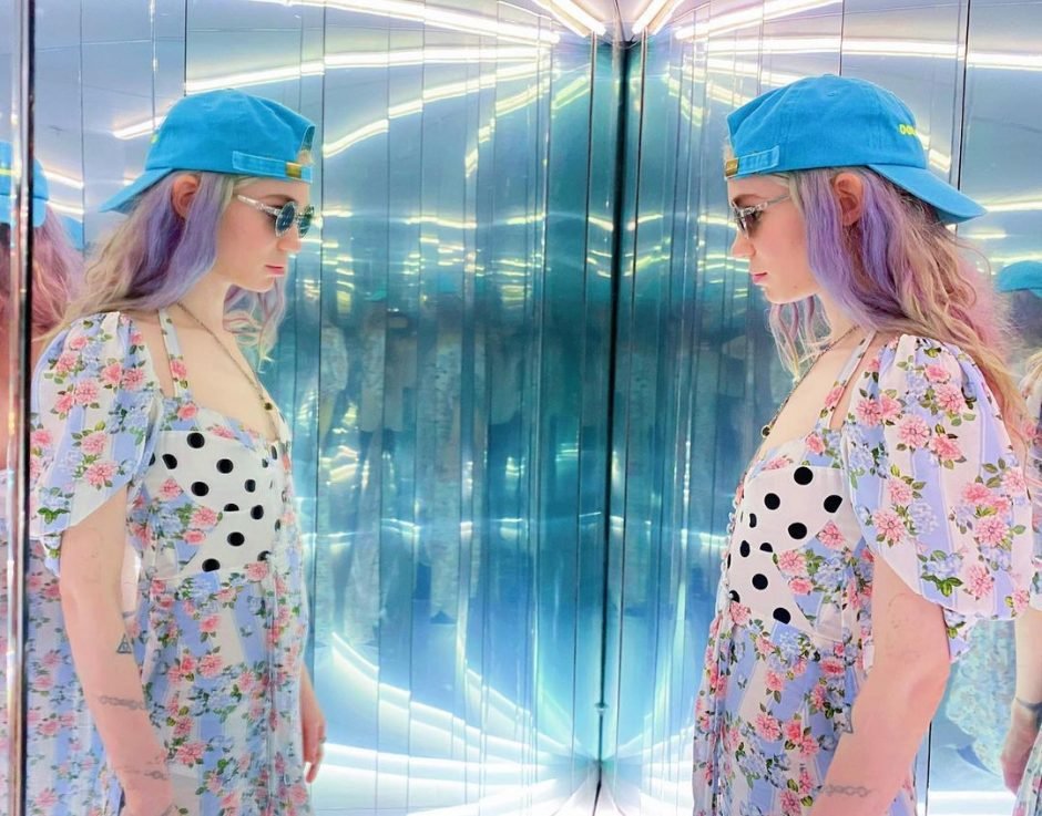 33-летняя женщина стояла в зеркальной комнате на фотографиях, опубликованных в ее аккаунте в Instagram 8 мая 2021 года, и смотрела на свое отражение. Граймс, у которой сын, названный, пожалуй, самым необычным именем X Æ A-12, 1 год, от Илона Маска, продемонстрировала свой уникальный стиль в платье с цветочным рисунком и в горошек. На ней также была голубая бейсболка, а под ней красовались ее волосы цвета лаванды. Канадская звезда познакомилась со своим техническим директором в Twitter. После нескольких кокетливых обменов сообщений у них завязался настоящий роман – обнародованный на Met Gala 2018, где они вместе прошли по красной ковровой дорожке. К январю 2020 года Граймс призналась подписчикам в социальных сетях о том, что находится в положении, родив ребенка 4 мая того же года.