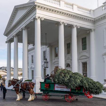 Джилл и Джо Байдены начали готовиться к Рождественским праздникам одни из первых. Украшением Белого дома по традициям занимается Первая Леди страны. Поэтому Джилл опубликовала на своей официальной странице в Инстаграм фотографию, на которой запечатлена елка. Вечнозеленое дерево было доставлено в Белый дом на лошадях. Елка имеет приблизительно 5 метров высоты, и именно она станет главным украшением президентского поместья в этом году.