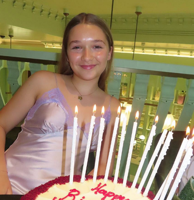На следующем фото именинница Харпер сидит рядом с 48-летним отцом Дэвидом в кафе. Папа с дочерью придвинулись друг к другу и широко улыбнулись перед фотографированием. На других снимках 11-летняя девочка счастливо позировала с подарочным пакетом Prada и улыбалась рядом с восхитительно выглядящим красно-белым праздничным тортом, который был освещен высокими белыми свечами.
