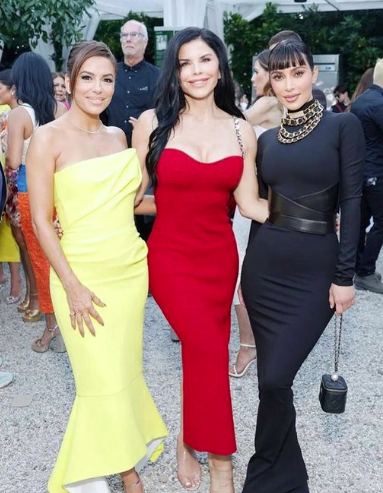 На субботнее мероприятие мама Меган была одета в розово-оранжевое платье с узором пейсли, которое она дополнила простыми золотыми украшениями. Дженнер и Кардашьян были на мероприятии полностью в белом и полностью черном соответственно.