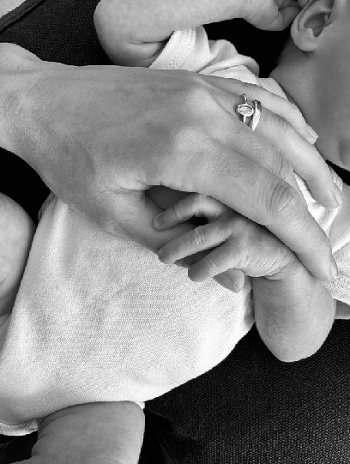 На милой фотографии видно, как Найсен держит руку дочери, лежащей у нее на груди в белом комбинезоне.