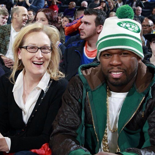 Легендарная актриса Мэрил Стрип и рэпер 50 Cent сидели вместе. Они много смеялись, держались за руки и просто наслаждались игрой НБА. Также, новые друзья фотографировались, а позже Кертис (настоящее имя 50 Cent) выложил эти снимки у себя в инстаграме. Судя по комментариям в социальной сети, актриса и рэпер случайно оказались на соседних местах арены Madison Square Garden в Нью-Йорке, но не растерялись и отлично провели время в компании друг друга.